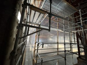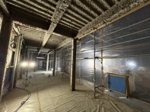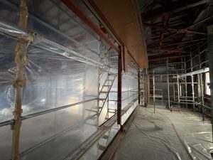 作業範囲外にアスベストが飛散しないよう、シートでしっかり隔離養生します。