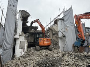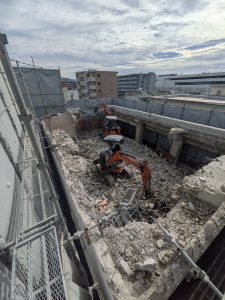2台の重機でRC造の事務所をどんどん解体していきます。